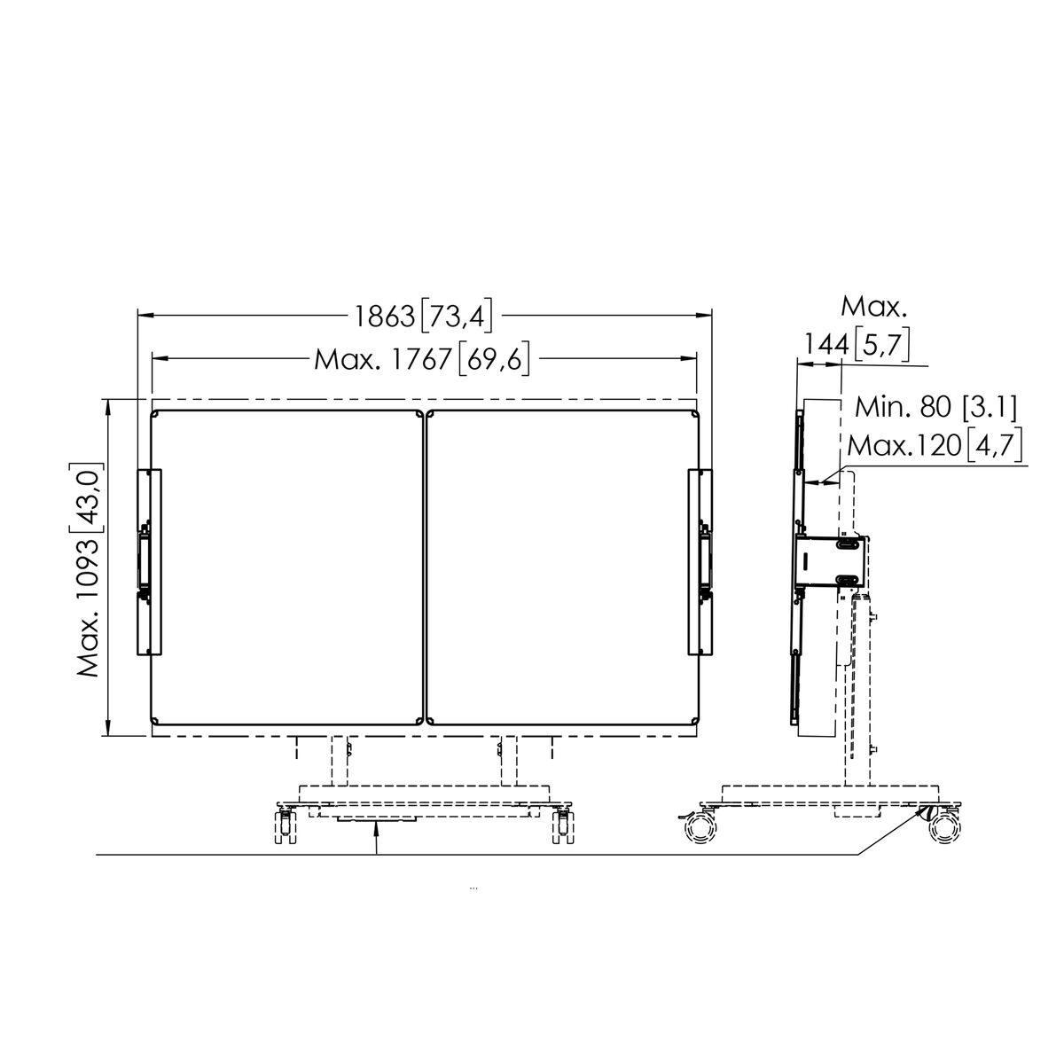 RISE Whiteboard Set er specialfremstillet til Vogels RISE motoriserede display lift trolley eller gulvstand. Monter et whiteboard til venstre og højre for displayet.