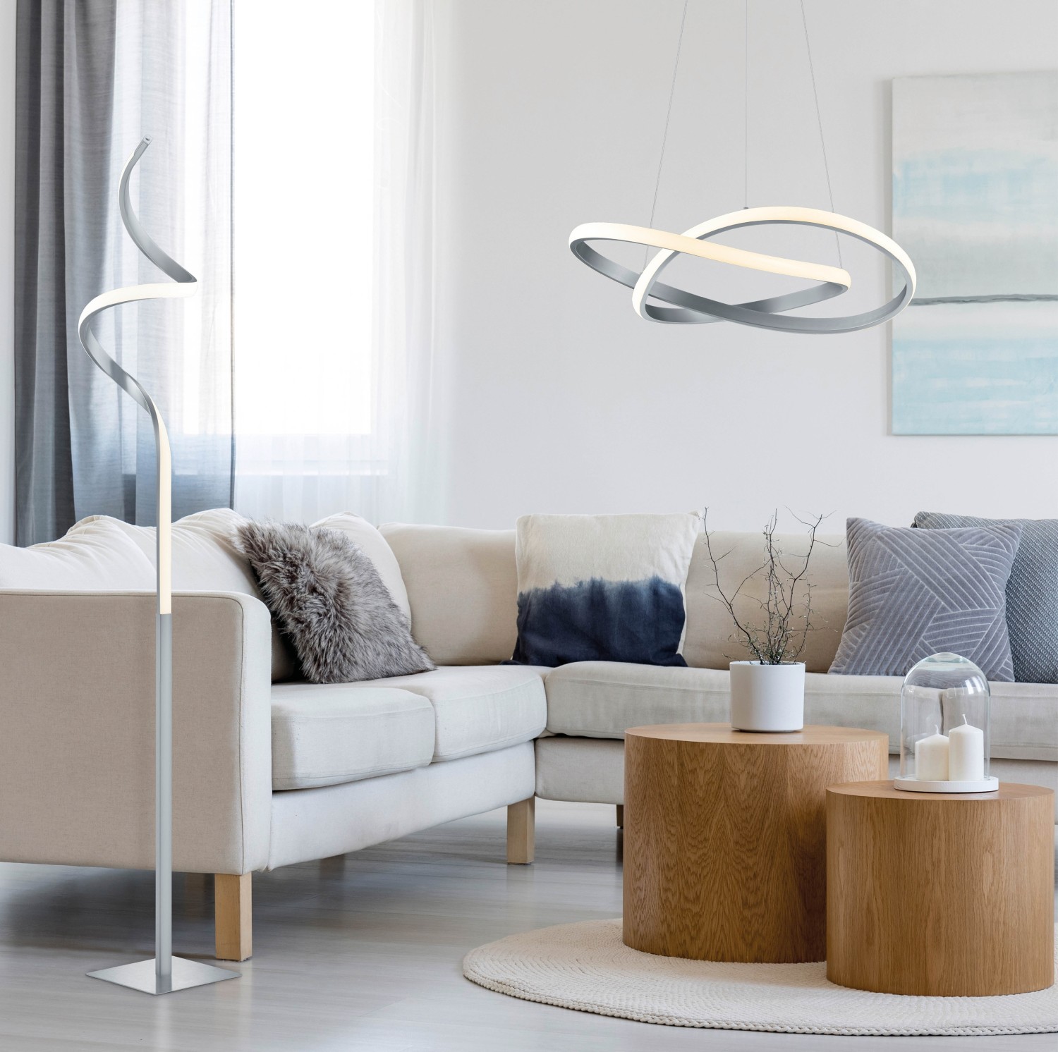Elegant RL gulvlampe i nikkel med indbygget lysdæmper og skumringssensor. 11W LED, 1150 lm, 3000K. Højde 1450 mm.