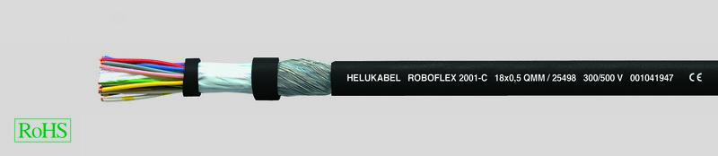 Robotkabel med forstærkende mellemlag og EMC-skærmning. Dette kabel er designet til installation i robotter, hvor torsion og vedvarende bøjninger kan forekomme.