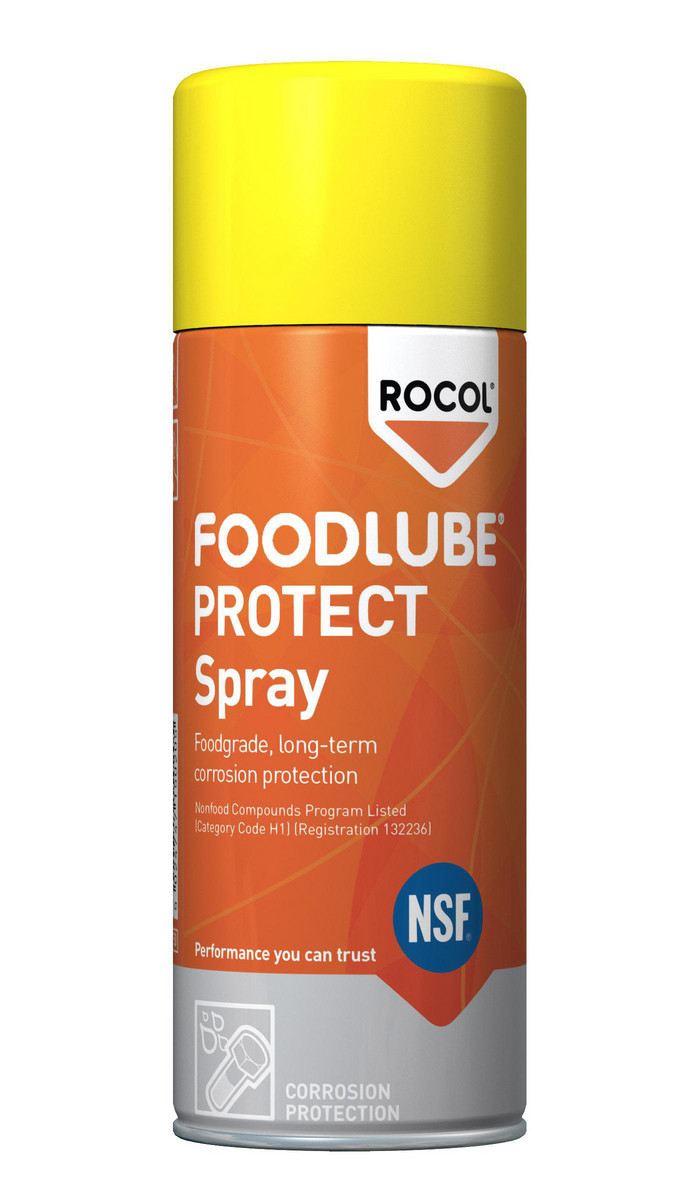 Foodlube Protect Spray fra Rocol i 300 ml. Vedligeholdelsesspray til brug i levnedsmiddelindustrien.