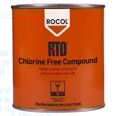 ROCOL RTD Chlorine Free skærepasta til rømning, gevindskæring, fræsning og boring i vanskeligt bearbejdelige metaller. Klorfri og med fremragende skæreegenskaber.