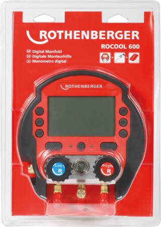 Det digitale ROCOOL 600 manometer fra Rothenberger er et præcist værktøj til måling af tryk. Dette sæt inkluderer én klemme, hvilket gør det nemt at fastgøre og aflæse målingerne.