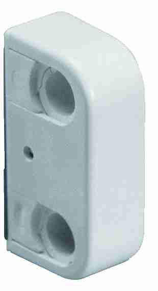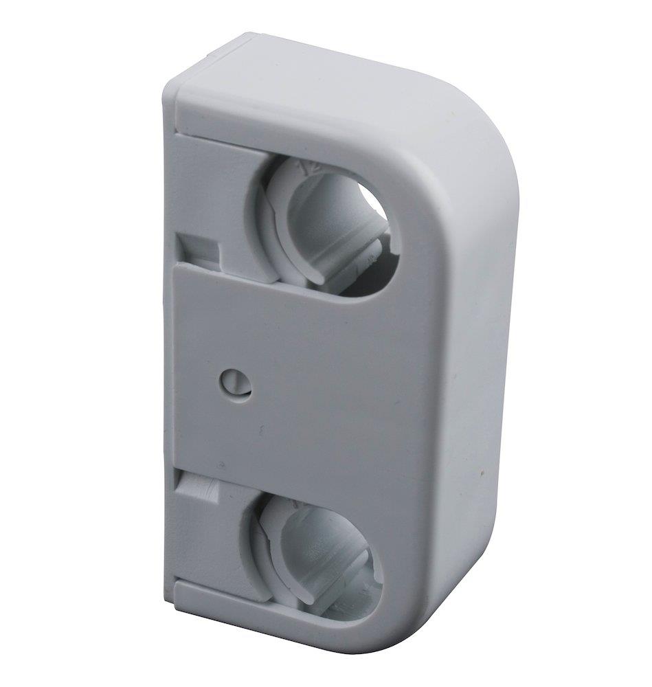 Purus dobbelt rørbærer i hvid plast. Center afstand 40 mm, Ø12-15 mm. Til skrue- eller limmontering, ideel til vådrum, hvor boring bør undgås.