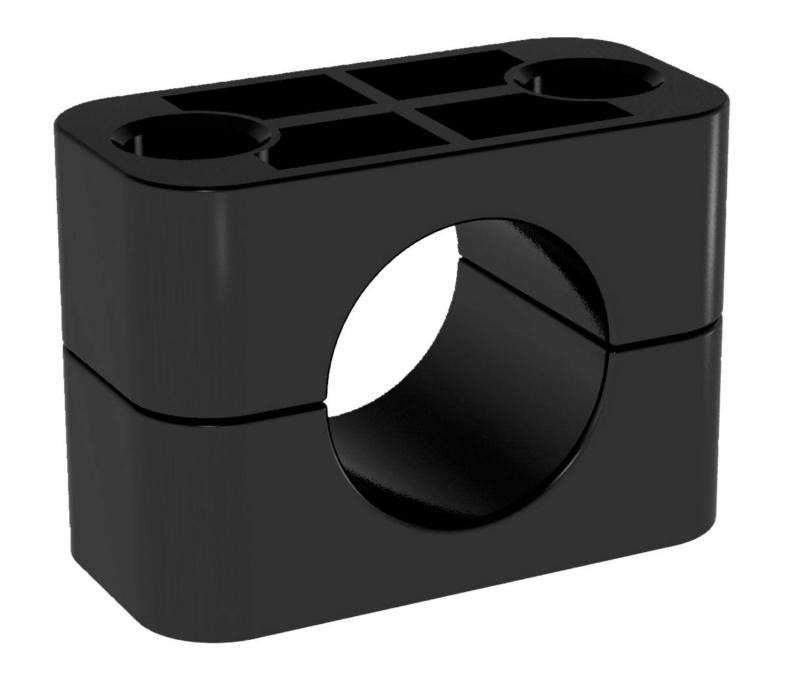Enkelt rørbærer på 12,7 mm i blå polypropylen med glat indvendig overflade. Letvægtsdesign. Tilbehør: svejseplade (53910301) og topplade (53917301). Bruger 2 x insex M6x25 eller 6-kt. M6x35.