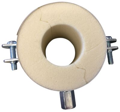 Isoleret rørophæng med 2 PIR elementer beklædt med grå PVC folie og selvklæbende overlap. Anvendes til varme- og brugsvandsinstallationer.