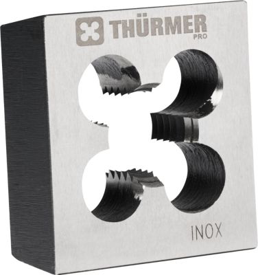 Thürmer Pro firkantet gevindbakke i HSS kvalitet. For 55° ISO rør-gevind. Opløb 2-3 gevind. Passende klup Nr. 1.