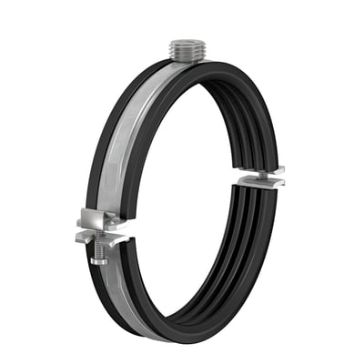 Rørbøjle BSA G1/2" med M10 gevind, designet til rør med en diameter på 159-162 mm. Temperaturbestandig fra -40 °C til +120 °C. Med lyddæmpende EPDM gummibånd.