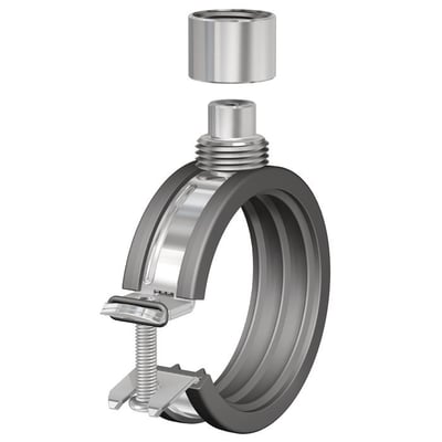Universelle rørbøjler fra Flamco med lyddæmpende gummibånd til sikker montering af rør på vægge eller lofter. Dimension: 8/10x75-80 mm.
