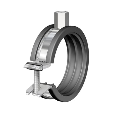 Universelle rørbøjler med lyddæmpende gummibånd til montering af rør på væg eller loft. Sikrer nem og vibrationsfri installation.