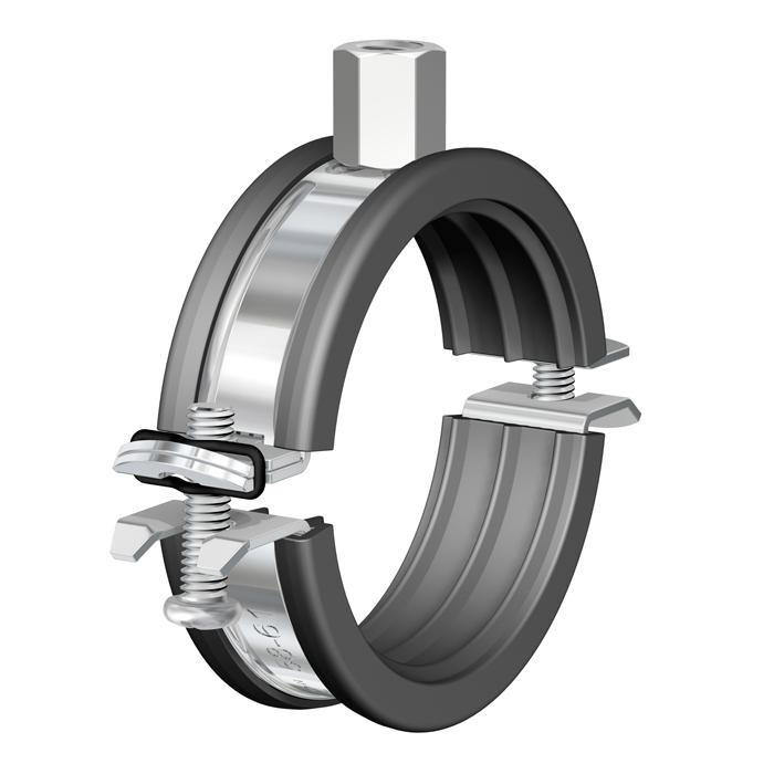 Rørbøjle med fastlimet gummiindlæg, kvik-lås for hurtig montage og skruer med slids. Tilslutning: M8/10. Ideel til sikker og nem fastgørelse af rør.