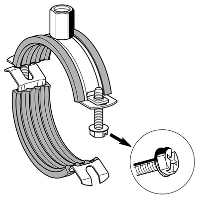 Scanclamp LS rørbøjle med gummi for sikker og vibrationsdæmpende montering. Passer til rør med en diameter på 159-170 mm. Med M8/M10 gevind.