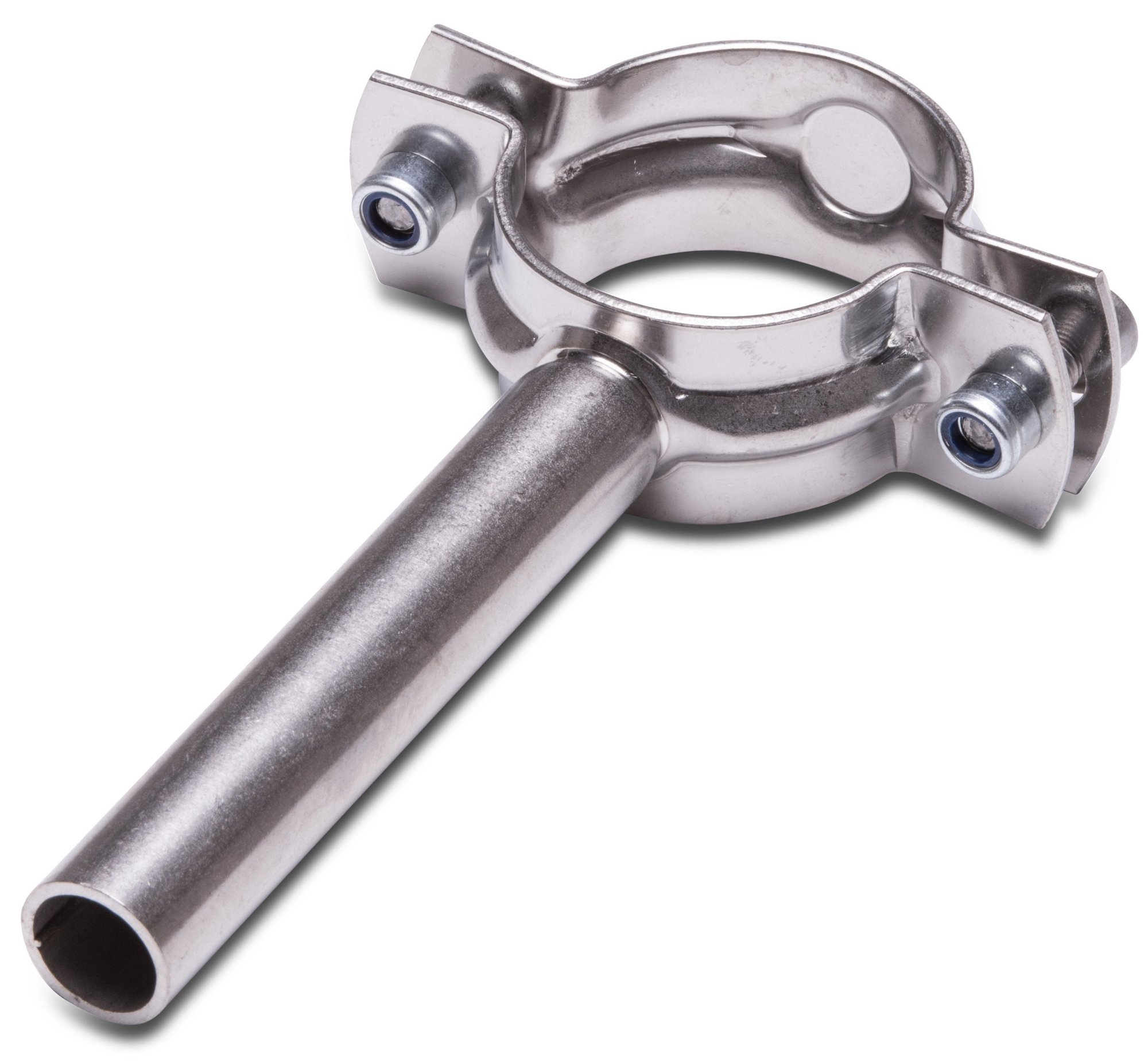 Denne rørholder er et essentielt tilbehør til levnedsmiddelfittings. Sikrer stabil og pålidelig fastgørelse af rør med en diameter på 38 mm.