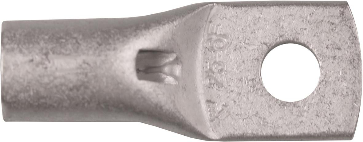 Cu-rørkabelsko KRF25-8 fra Elpress. Til 25mm² få- og mangetrådede Cu-ledere. Materiale: Cu 99,95%, fortinnet. Laske M8 og med inspektionshul.