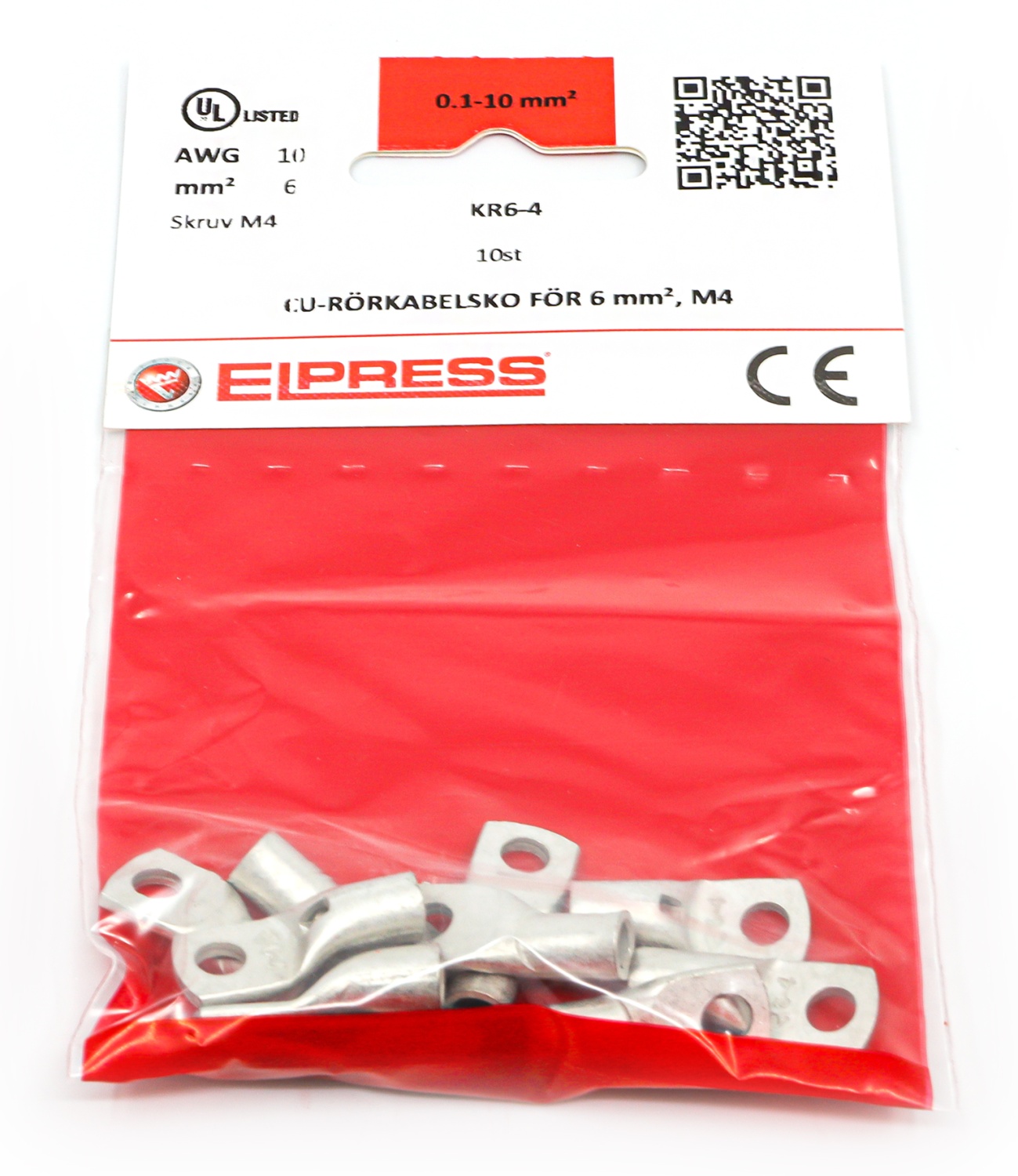 Kobber rørkabelsko KR6-4 fra Elpress, designet til pålidelige forbindelser. Her er specifikationerne: