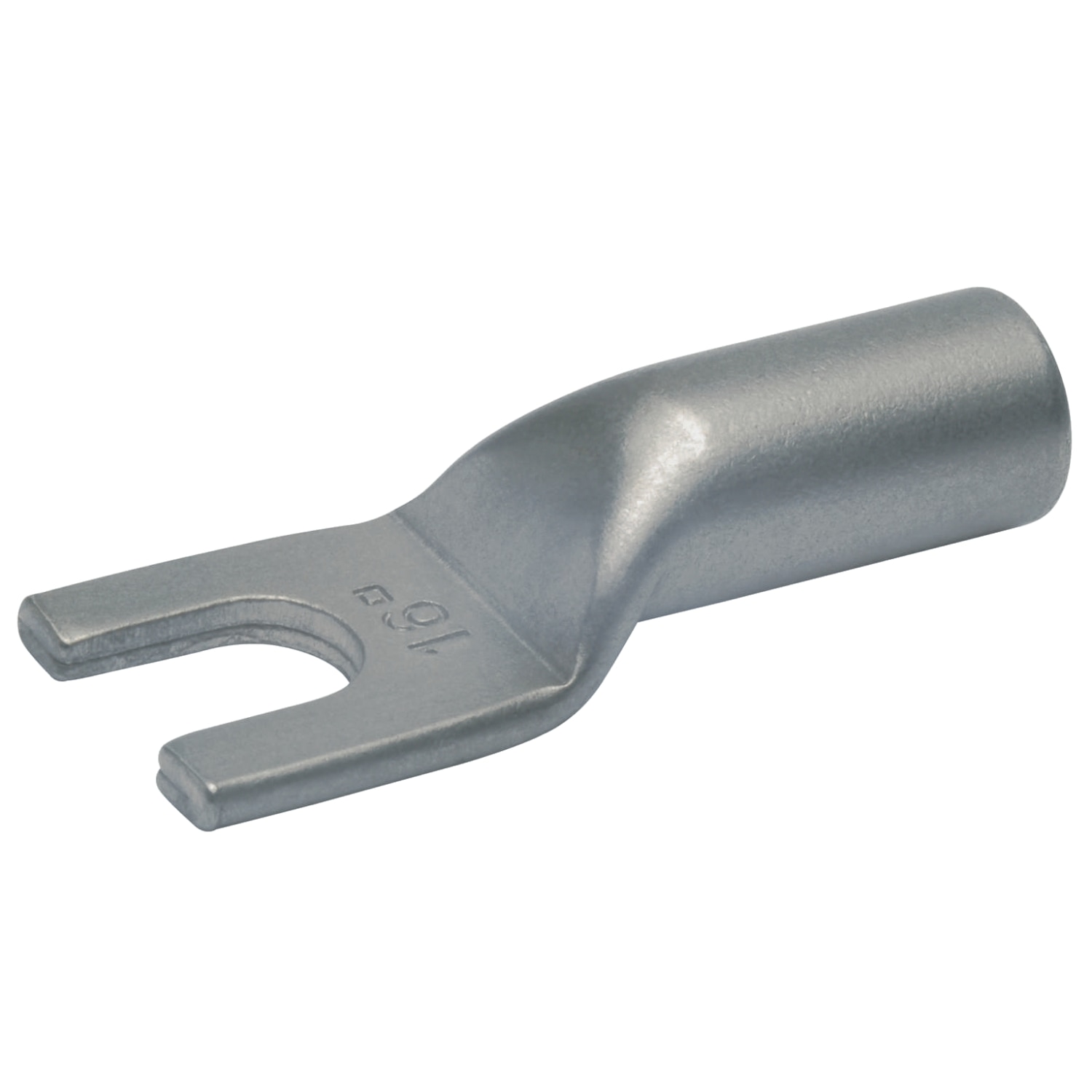 Gaffelformet rørkabelsko i nikkel, designet til 10 mm² kabel med M5 forbindelse.