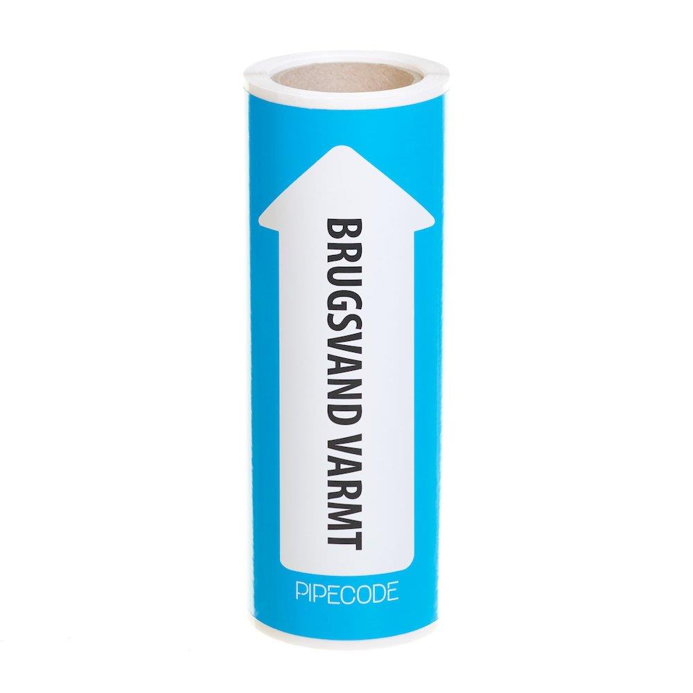 Pipecode rørmærkningssystem til tekniske installationer. Opbygget efter Dansk Standard 134 og 735 med farver, kendingsbogstaver og beskrivelser. Længde: 5m.
