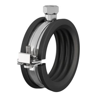Universelle rørbøjler med lyddæmpende gummibånd til montering af rør på væg eller loft. Ideel til VVS-installationer og sikrer stabil og støjsvag fastgørelse.