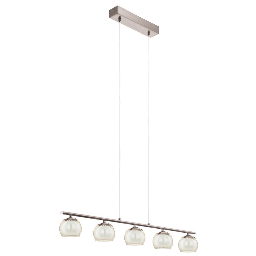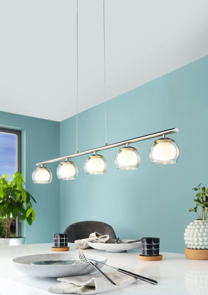 EGLO ASCOLESE Romagnese langbordspendel i børstet stål med klar og hvid glas. Inkl. 5 x 3,3W LED, 1700LM, 3000K.