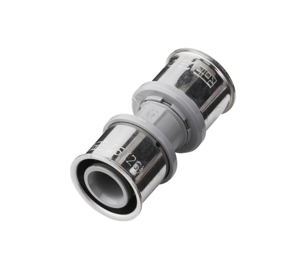 Denne Roth KU-samlemuffe er fremstillet i korrosionsbestandig PPSU og udstyret med PressCheck-funktion, der sikrer en pålidelig samling.