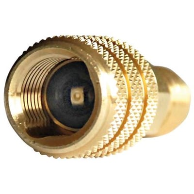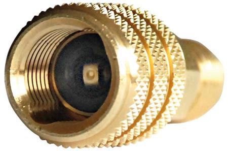 Adapter, 1/4 SAE (M) - 5/16 SAE (F) med ventiludløser til nitrogensæt. Bruges til nye gasdåser på eksisterende udstyr.