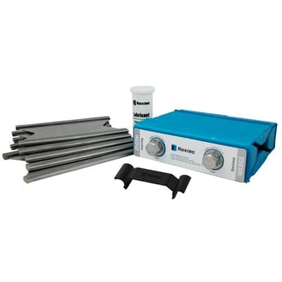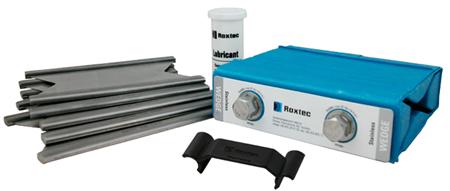 Roxtec Wedgekit med kompressionsenhed, stagplader, wedge clip og smøremiddel. Hurtig installation og re-installation af gennemføringssystemer.