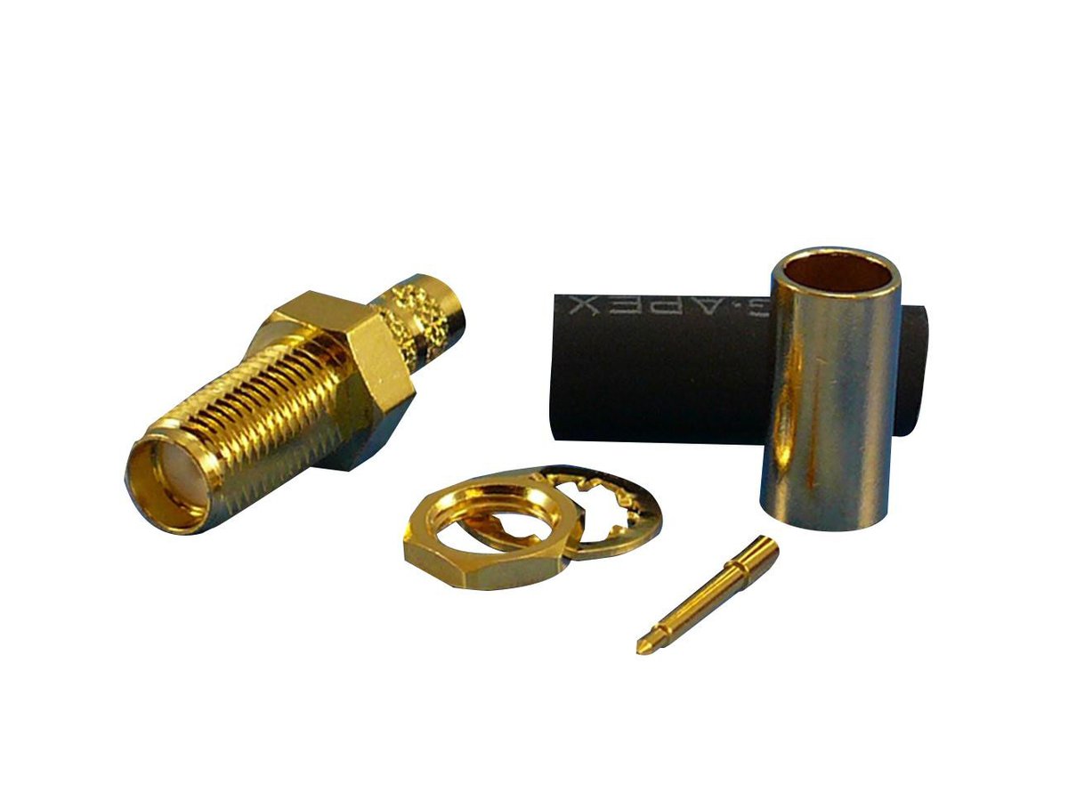 RP SMA hun crimp konnektor, Bulkhead til LMR200 kabler.