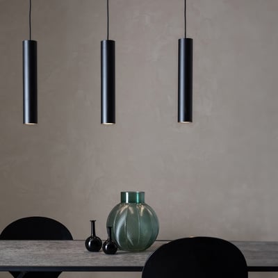 Ruben pendel er en elegant og stilfuld langbordspendel, der vil tilføje et moderne touch til dit hjem. Med sit minimalistiske design og sorte finish passer den perfekt ind i de fleste indretninger. Pendlen er ideel til at hænge over spisebordet, køkkenøen eller i stuen, hvor den vil skabe en behagelig og indbydende atmosfære.