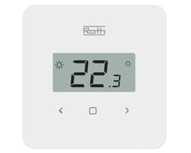 Roth Softline Standard hvid rumtermostat Trådløs. Med stort display. Temperaturen indstilles nemt med de to touchknapper.