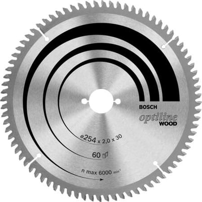 Optiline Wood rundsavklinge til kap-/geringssav. Anvendes til træ, spånplade, akustikplader, lette byggeplader m.m.