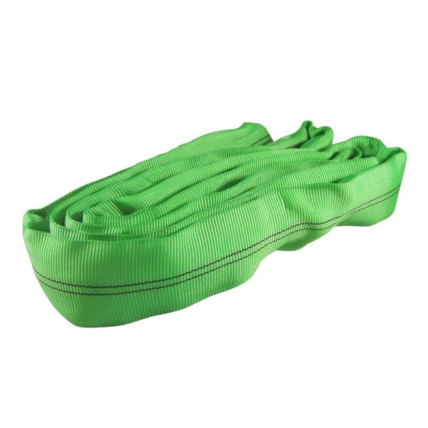 Rundslingens konstruktion sikrer en jævn fordeling af vægten, hvilket minimerer risikoen for skader på både lasten og selve slyngen. Den grønne farve indikerer desuden løftekapaciteten i henhold til internationale standarder, hvilket gør det nemt at identificere den korrekte sling til opgaven.