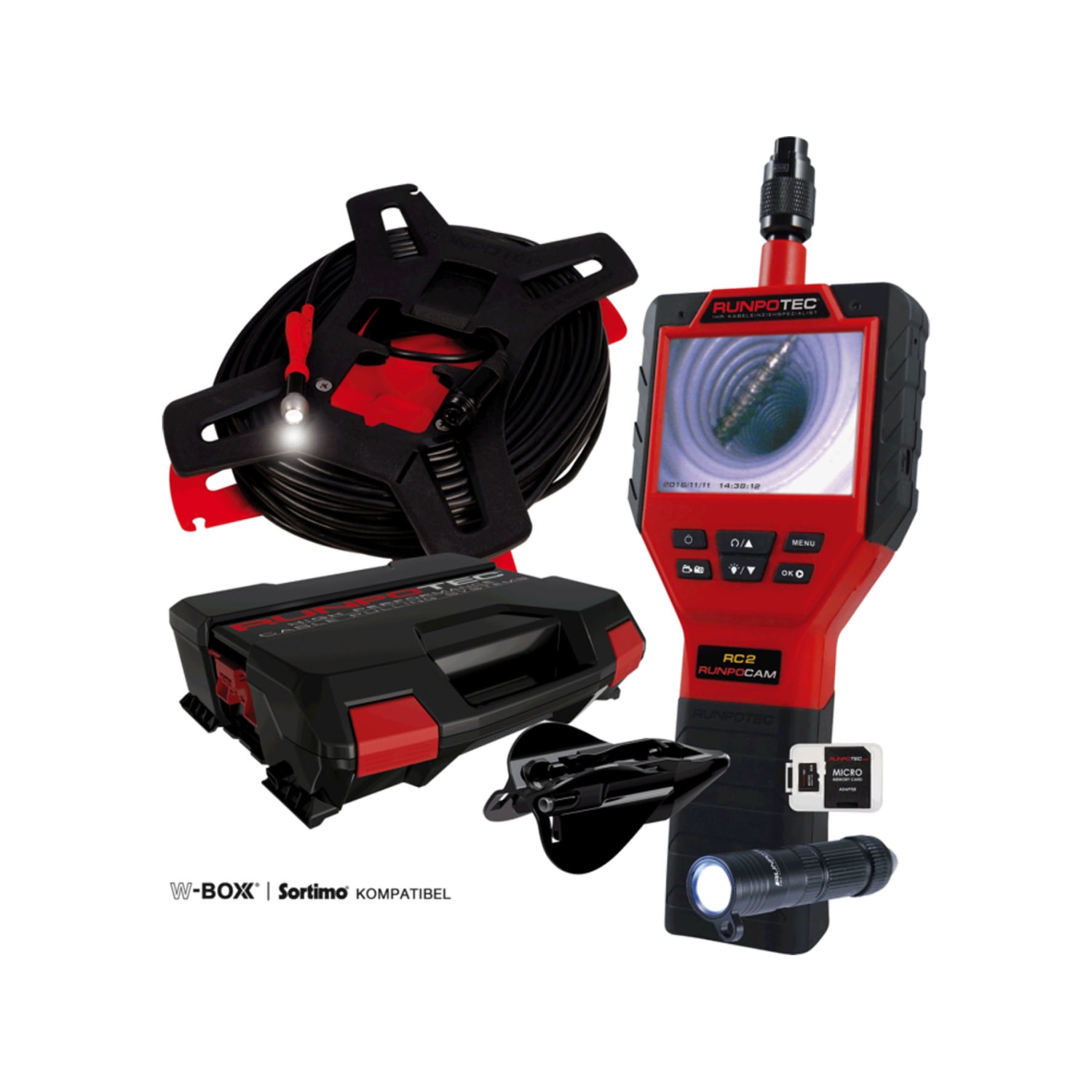 Runpo Inspektionskamera med 50 meter fiber og alt nødvendigt tilbehør.