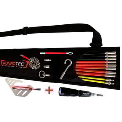 Dette RUNPOSTICKS søgesæt indeholder 19 dele, der er designet til at gøre kabeltrækning så enkel og effektiv som muligt. Sættet er ideelt til både professionelle elektrikere og erfarne gør-det-selv-entusiaster, der har brug for pålideligt værktøj til installation af kabler i rør og kanaler.