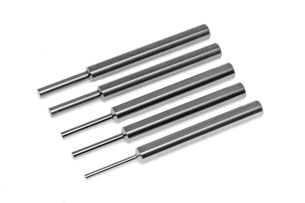Sæt med 5 cylindriske splituddrivere i rustfrit stål (17-4 PH). Størrelser: 2,0, 2,5, 3,0, 4,0 og 6,0 mm. Standardlængde: 88 mm.