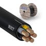 Halogenfrit og flammehæmmende kabel. Godkendt til Svanemærket byggeri. Til indendørs og udendørs brug, i rør og i jorden. Afgiver kun røg uden ætsende gasser ved brand.