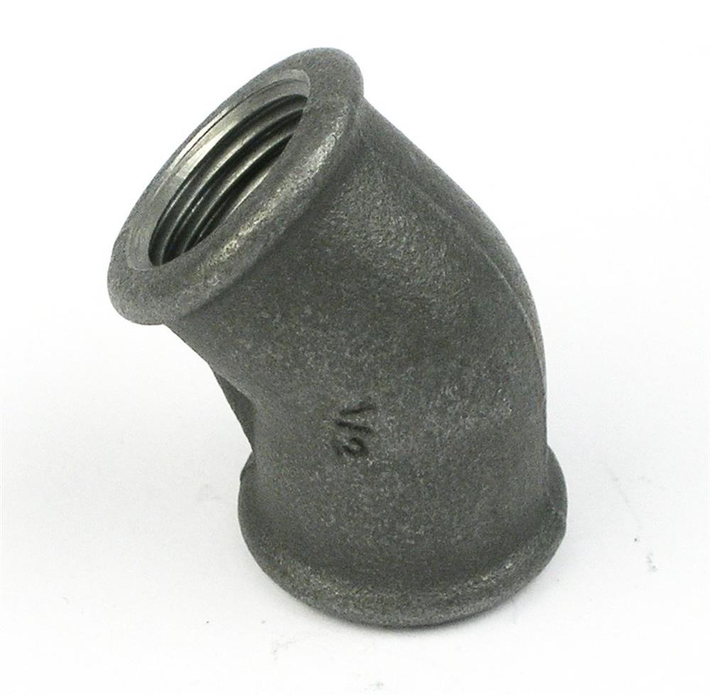 Vinkel 1", 45°, muffe/muffe, sort