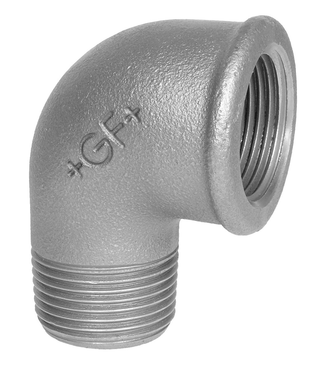 Blødstøbt randfitting, fremstillet efter ISO 49 - DS/EN10242. Rørgevind er udført efter DS/ISO 7 -1 - DS/EN 10266. Udvendige gevind er koniske (stigning 1:16). Indvendige gevind er cylindriske.