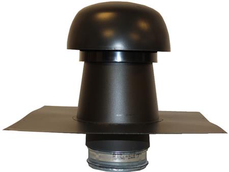 Universal taghætte til paptag med varmgalvaniseret bundplade. Ø125 mm, sort, med kondensisoleret nippelrør.