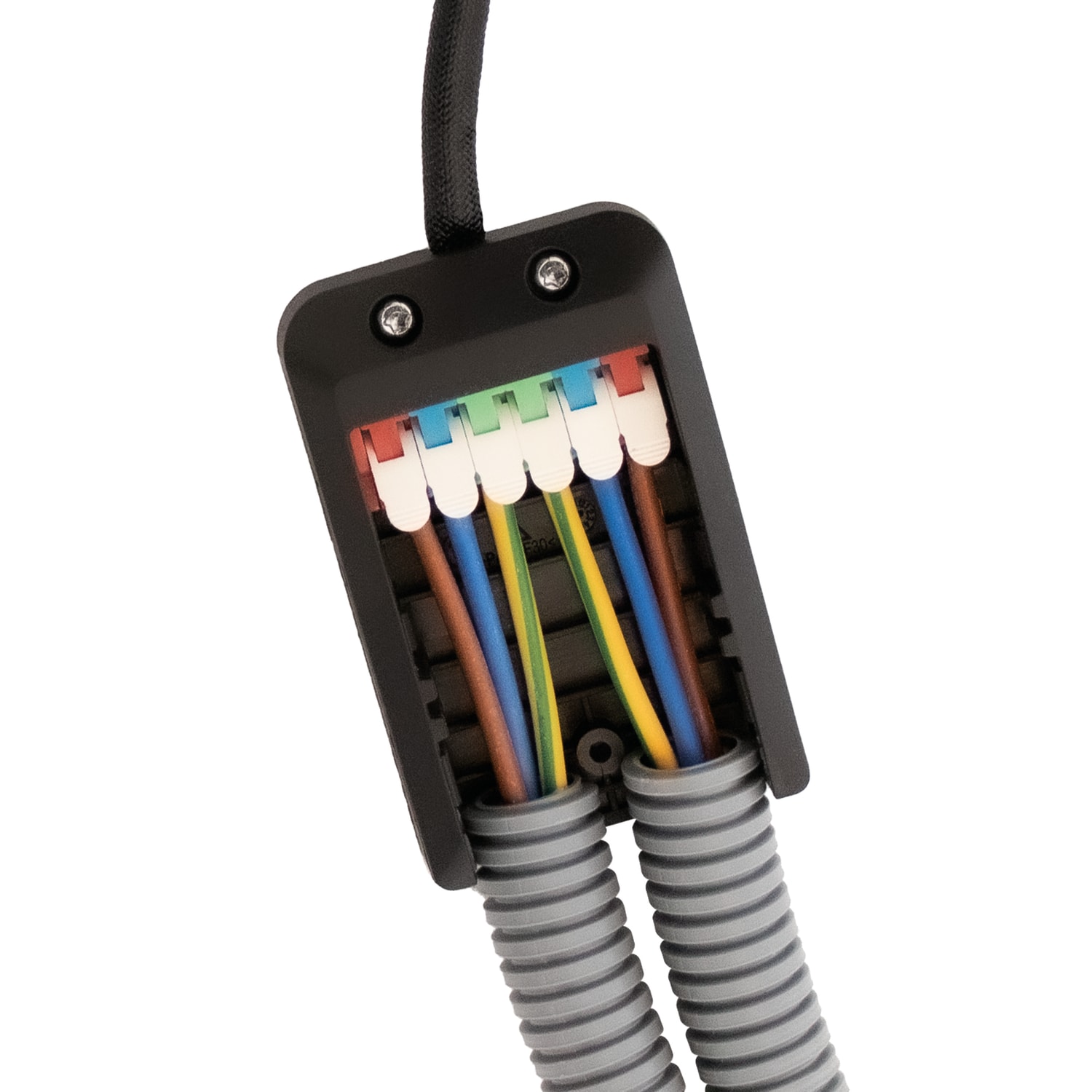 - Den kompakte tilslutningsboks (kun 20 mm i højden) er forberedt for installation med kabel eller flexrør.