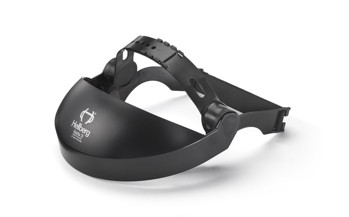 En robust og justerbar visirholder med pandebeskyttelse. Kan bruges selvstændigt eller med Hellbergs høreværn.