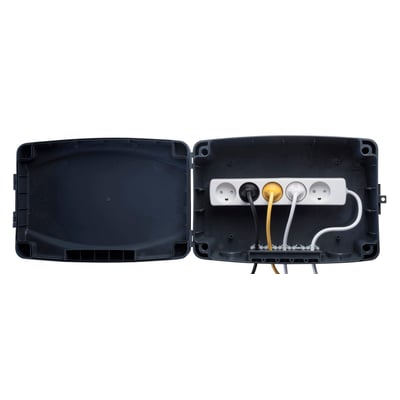 Safety Box Maxi er let at installere og giver en sikker og vandtæt forbindelse. Perfekt til brug i haver, på terrasser og andre udendørs områder, hvor du har brug for pålidelig beskyttelse af dine elektriske samlinger.Fordele ved at vælge Safety Box Maxi: