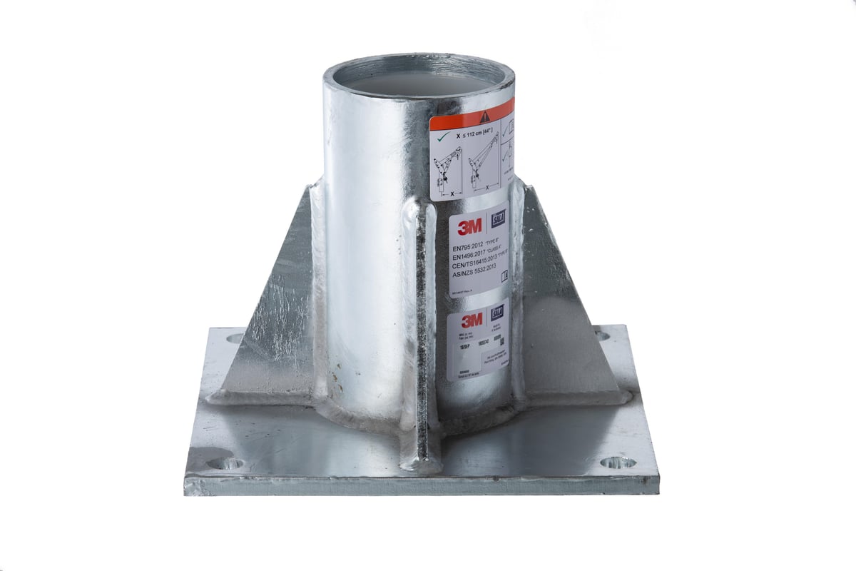 Gulvmonteret sokkel i galvaniseret stål til brug med 3M™ DBI-SALA® Davitmast. Skaber et rednings- og arbejdssystem til lukkede rum. Monteres direkte på arbejdsfladen.