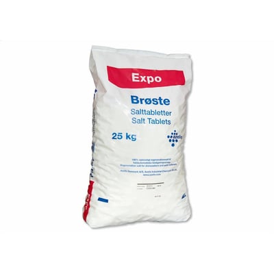 Brøste Expo salttabletter er specielt udviklet som regenerationssalt til blødgøringsanlæg og til automatisk fremstilling af saltlage til eksempelvis industriopvaskemaskiner. Der er tale om en fuldt opløselig salttablet, der er produceret af rent vacuumsalt.