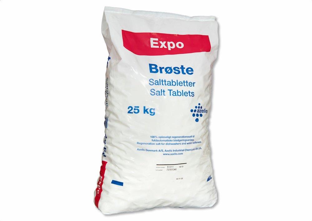 Brøste Expo salttabletter er udviklet til blødgøringsanlæg og automatisk fremstilling af saltlage til eksempelvis industriopvaskemaskiner.