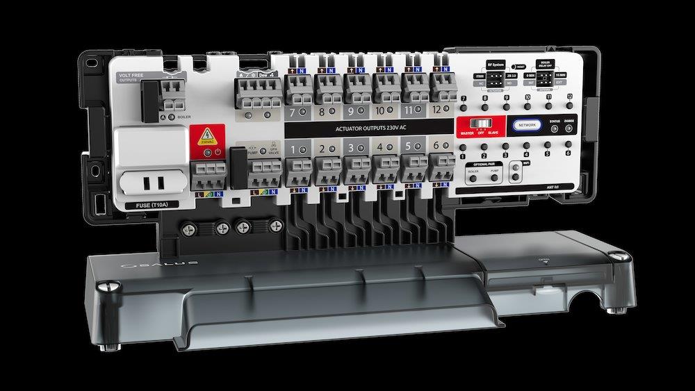 Trådløs kontrolboks til gulvvarme med 12 zoner og 24 aktuatorer. Direkte 230V pumpeforbindelse og understøtter master-slave funktion.
