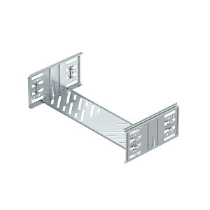 Kabelbakkeforbindelse med MAGIC fastgørelse til skrueløs forbindelse af perforerede kabelbakker med en sidehøjde på 110 mm.