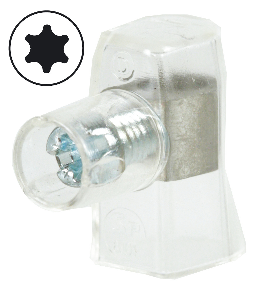 Samlemuffe 2,5 mm² enkel klar med Torx 10 kærv. Bruges til at forbinde en eller flere wire ledere i installationsbokse, interne forbindelser i apparater eller i lysarmaturer.