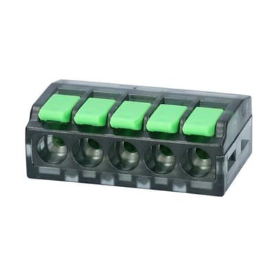Fjeder samlemuffe 5 x 0.2-4mm2, AWG 28-12, genoplukkelig.