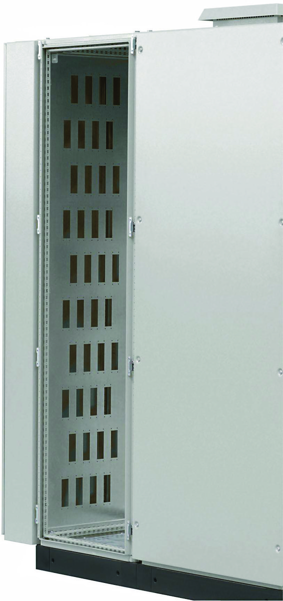 Samlingsplade til brug mellem to kabinetter, eller i kombination med en hævet sidedør (DNSR). Pladen har hulmønstre til 24 pin stik og kan tilpasses til 16 pin stik ved brug af MMG dækplader.