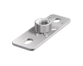 Montageflange med et fastsvejst metrisk gevind eller rørgevind. Bruges i forbindelse med gevindstænger og nippelrør til at bære rørbøjler. Kan fastgøres på væg, loft og gulv eller på bæreskinner. Denne kraftige model kan holde til en statisk træklast på maks. 4000N. Flangens størrelse er 40 x 120 x 4 mm.