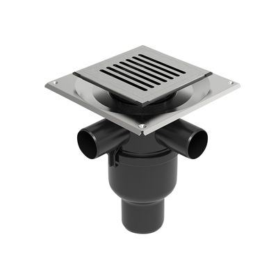 Komplet monteringspakke med ClassicLine kvadratisk afløb, Column rist (15x15), stålarmatur og udløbshus med vandlås (Ø110).